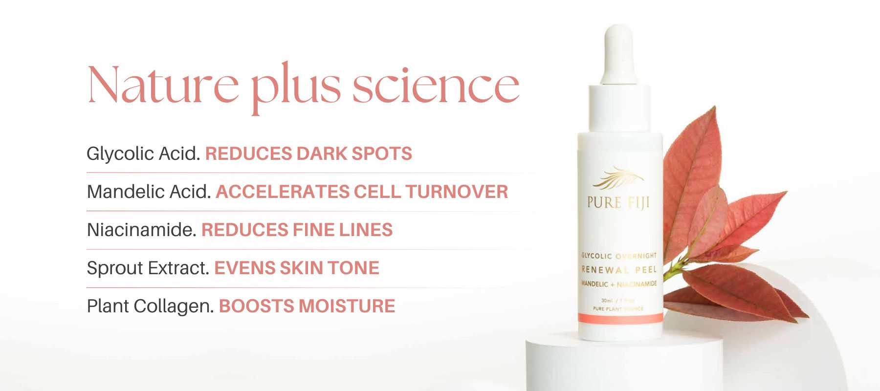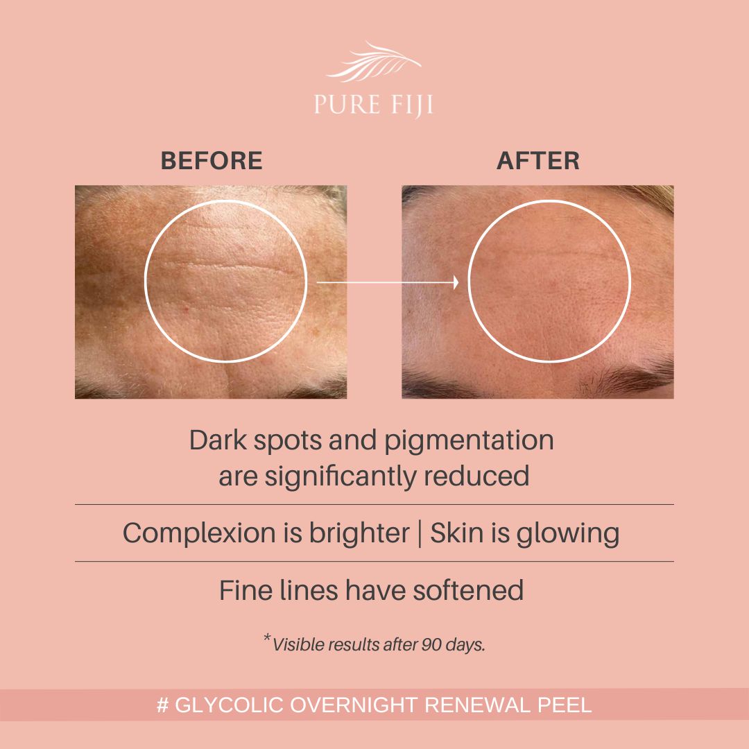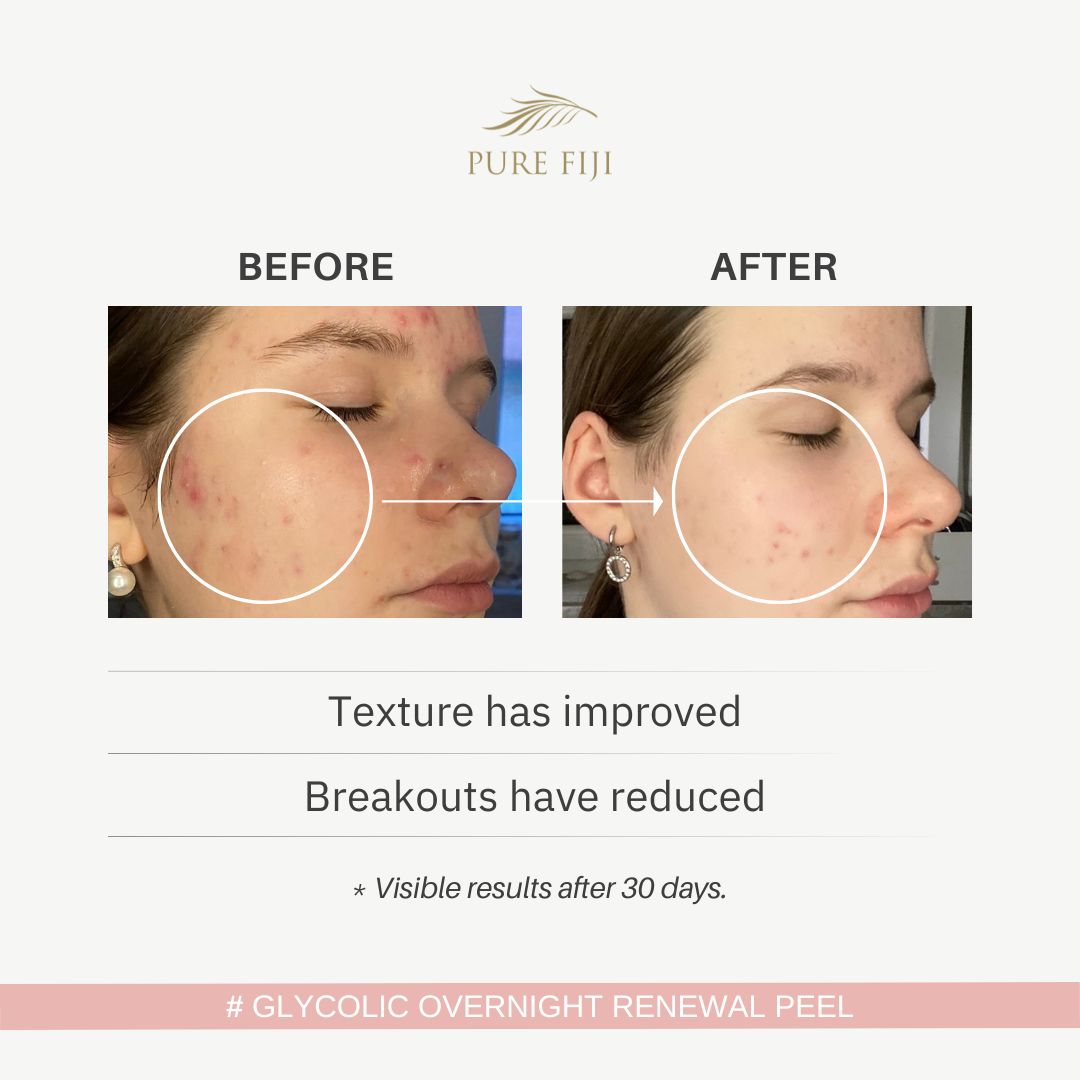It is important to build tolerance in your skin when using active ingredients. Allow the skin to normalise after using the Glycolic Renewal Peel for one to two days before using a Pure Fiji overnight masque. It is recommended to do a patch test before using a new skincare product. If irritation occurs discontinue use. Avoid direct sunlight after use.